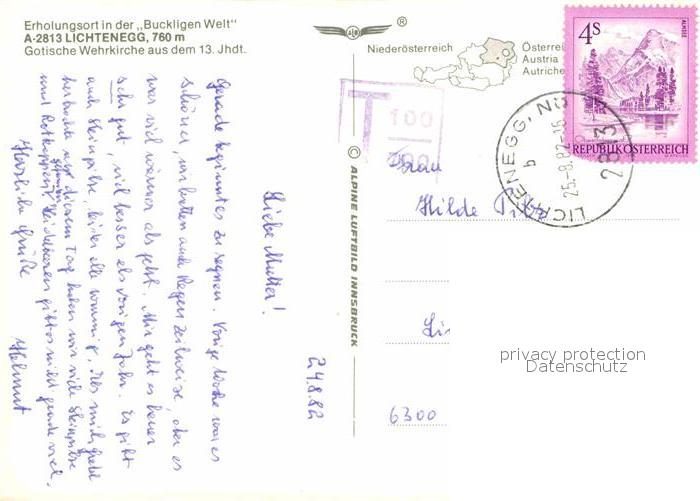72674667 alte Postkarte Lichtenegg Niederoesterreich Gotische Wehrkirche Fliegeraufnahme postalisch gelaufen Erhaltung siehe scans [WerneD78] KatCode: 11390122032317