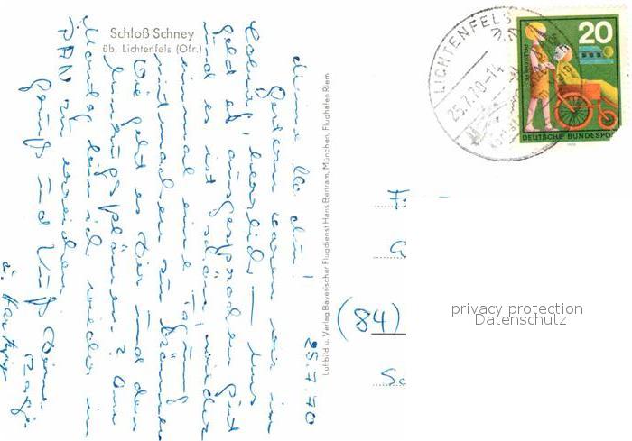 72761899 alte Postkarte Lichtenfels Bayern Fliegeraufnahme Schloss Schney postalisch gelaufen Erhaltung siehe scans [LiesaD40] KatCode: 11110009478139