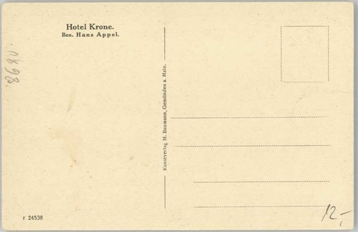 40236789 Lichtenfels Bayern Hotel Krone * 1920 KatCode 11110009478139
