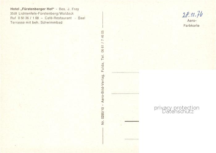 73866439 Lichtenfels Hessen Hotel Fuerstenberger Hof Terrasse mit Schwimmbad postalisch nicht gelaufen Erhaltung siehe scans [WerneD78] KatCode: 11110006635016