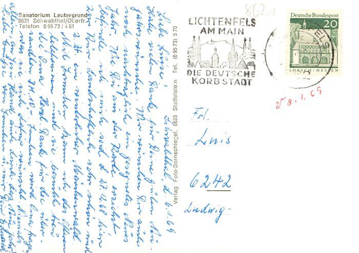 73936729 alte Postkarte Lichtenfels Hessen Sanatorium Lautergrund postalisch gelaufen Erhaltung siehe scans [WerneD78] KatCode: 11110006635016