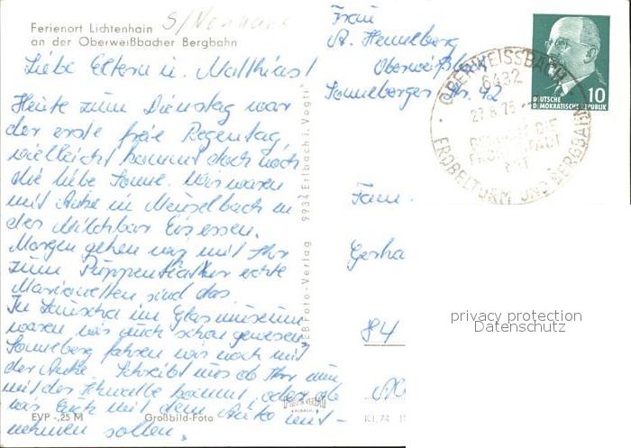 72273416 alte Postkarte Lichtenhain Bergbahn Oberweissbacher Bergbahn postalisch gelaufen Erhaltung siehe scans KatCode: 11110016073051