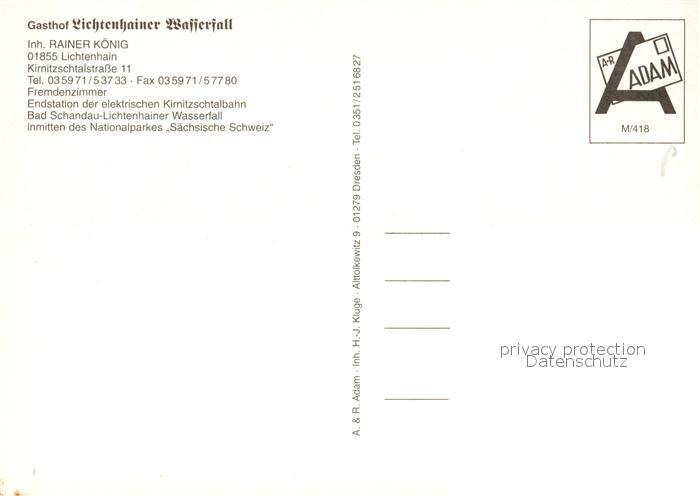 73227769 Lichtenhain Sebnitz Gasthof Lichtenhainer Wasserfall postalisch nicht gelaufen Erhaltung siehe scans [LiesaD40] KatCode: 11110014287370