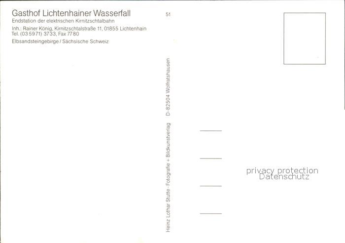 72454436 Lichtenhain Sebnitz Gasthof Lichtenhainer Wasserfall postalisch nicht gelaufen Erhaltung siehe scans KatCode: 11110014287370