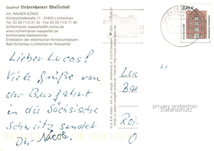 73657847 alte Postkarte Lichtenhain Sebnitz Gasthof Lichtenhainer Wasserfall postalisch gelaufen Erhaltung siehe scans [FriedD77] KatCode: 11110014287370