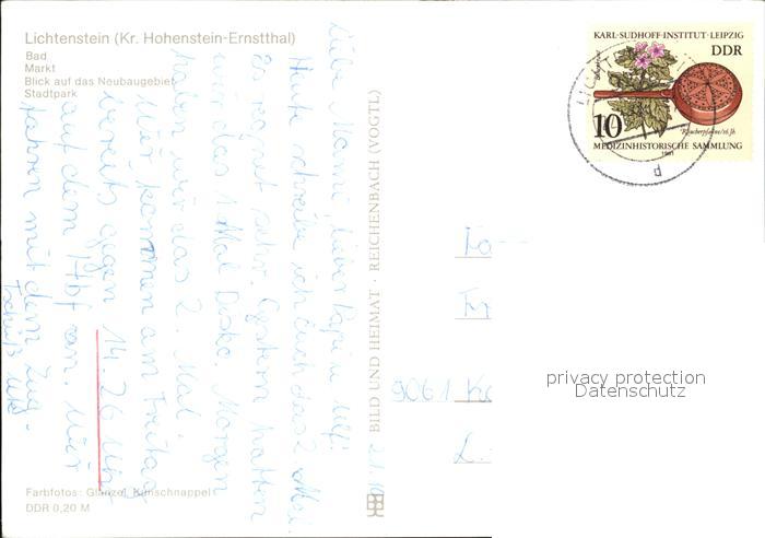 72418307 alte Postkarte Lichtenstein Hohenstein-Ernstthal Bad Markt Neubaugebiet Stadtpark postalisch gelaufen Erhaltung siehe scans KatCode: 11110014173100