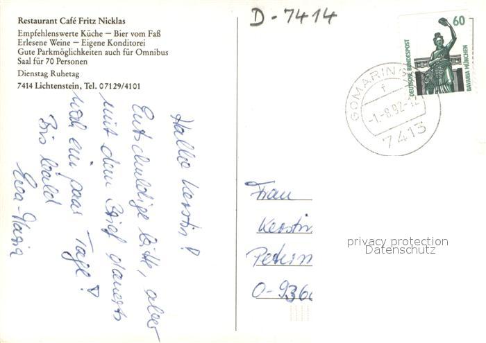73653314 alte Postkarte Lichtenstein Wuerttemberg Cafe Nicklas Gastraeume postalisch gelaufen Erhaltung siehe scans [WerneD78] KatCode: 11110008415092