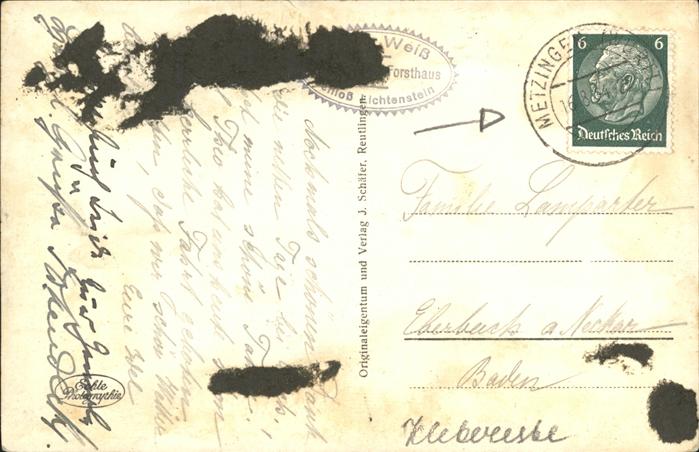 71324627 alte Postkarte Lichtenstein Wuerttemberg Hauffdenkmal beim Schloss postalisch gelaufen Erhaltung mit Maengel KatCode: 11110008415092