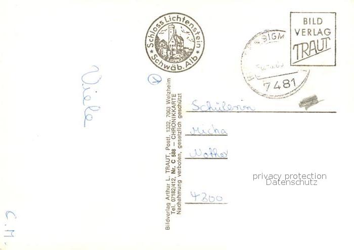 73249650 alte Postkarte Lichtenstein Wuerttemberg Schloss postalisch gelaufen Erhaltung siehe scans [NatalD47] KatCode: 11110008415092