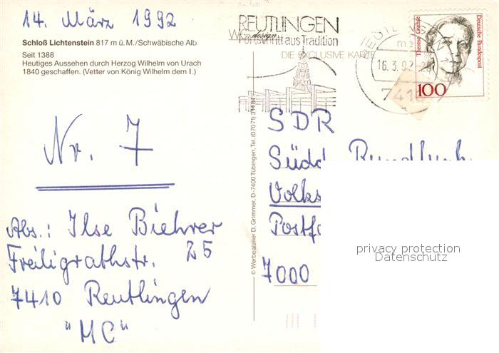 73249646 alte Postkarte Lichtenstein Wuerttemberg Schloss Lichtenstein postalisch gelaufen Erhaltung siehe scans [NatalD47] KatCode: 11110008415092