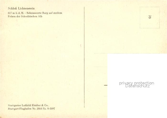 73677821 Lichtenstein Wuerttemberg Sehenswerte Burg auf steilem Felsen der Schwaebischen Alb Fliegeraufnahme postalisch nicht gelaufen Erhaltung siehe scans [WerneD78] KatCode: 11110008415092
