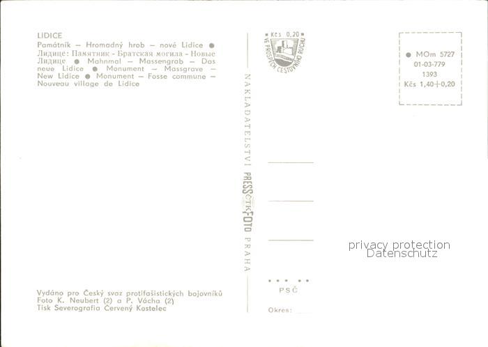 Lidice Mahnmal Massengrab postalisch nicht gelaufen Erhaltung siehe scans