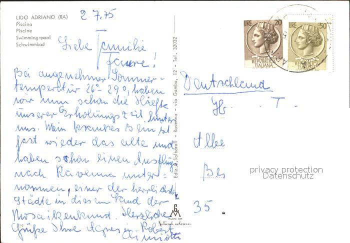 old postcard Lido Adriano Piscina Swimming Pool Hotels postalisch gelaufen Erhaltung siehe scans