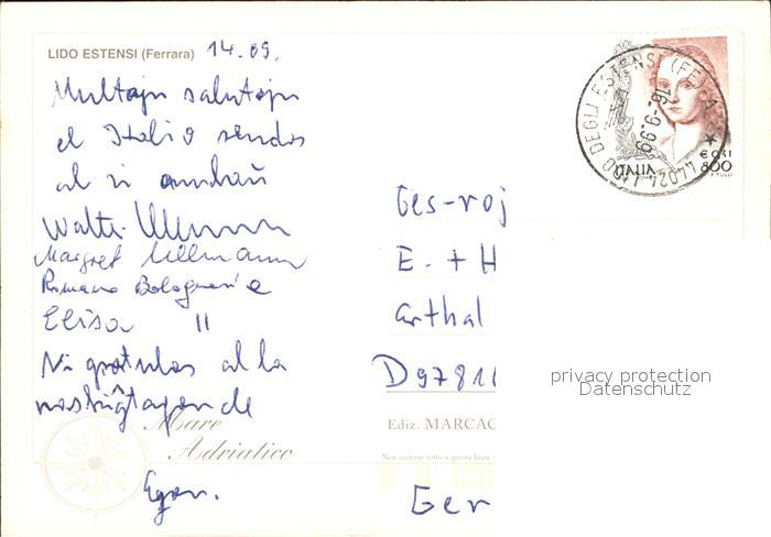 old postcard Lido degli Estensi Sonnenuntergang Strand Hafenpartie postalisch gelaufen Erhaltung siehe scans