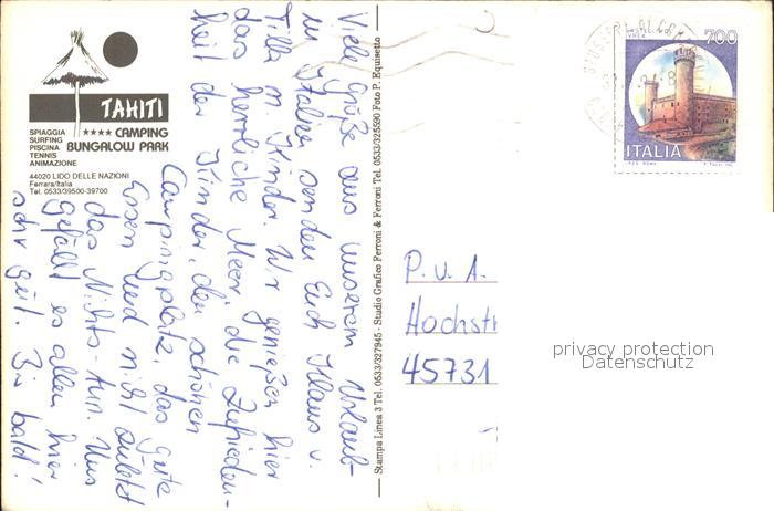 old postcard Lido delle Nazioni Tahiti Camping Bungalow Park Pferd postalisch gelaufen Erhaltung siehe scans