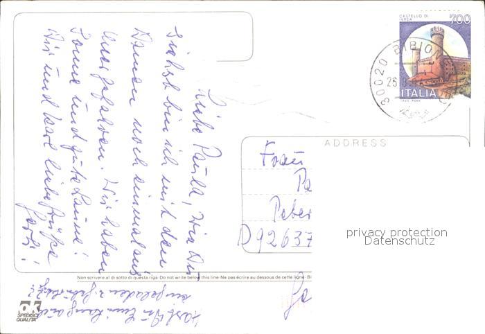 old postcard Lido di Bibione Strand Fliegeraufnahme Springbrunnen Segelboot postalisch gelaufen Erhaltung siehe scans