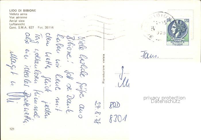old postcard Lido di Bibione Veduta aerea postalisch gelaufen Erhaltung siehe scans
