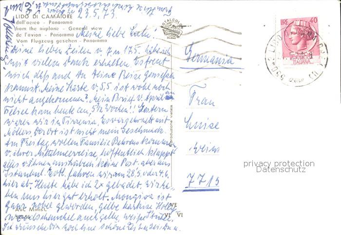 old postcard Lido di Camaiore Fliegeraufnahme postalisch gelaufen Erhaltung siehe scans