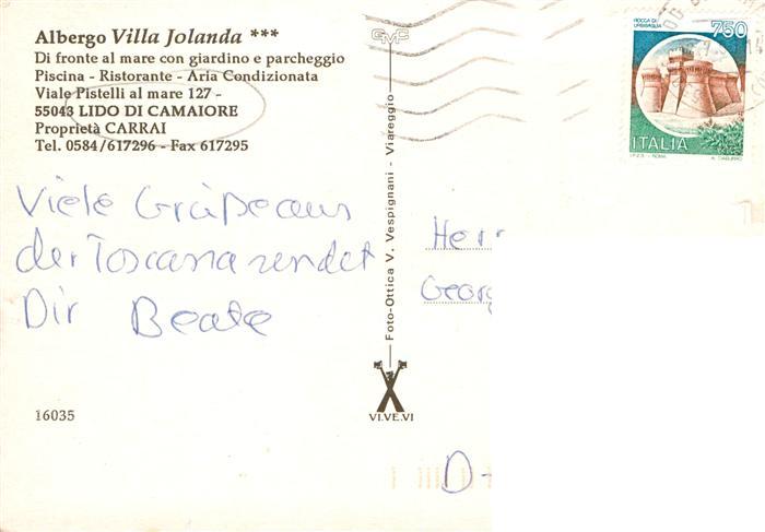 73905467 old postcard Lido di Camaiore Toscana IT Albergo Villa Jolanda Rezeption Pool postalisch gelaufen Erhaltung siehe scans [FriedD77] KatCode: 11240