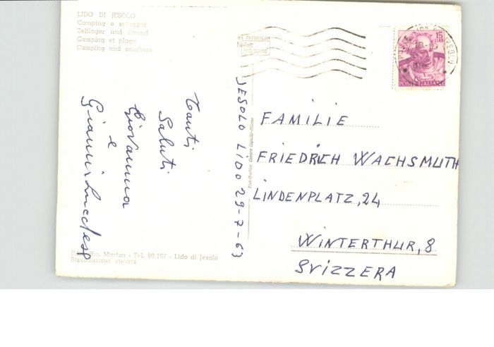 old postcard Lido di Jesolo Camping Spiaggia Zeltlager Strand postalisch gelaufen