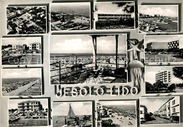 old postcard Lido di Jesolo Fliegeraufnahmen Strandpartien Albergo Concordia Villa Elsa Hotel Mediteranee Hotel Bellevue Via Bafilo postalisch gelaufen Erhaltung siehe scans [WerneD78]