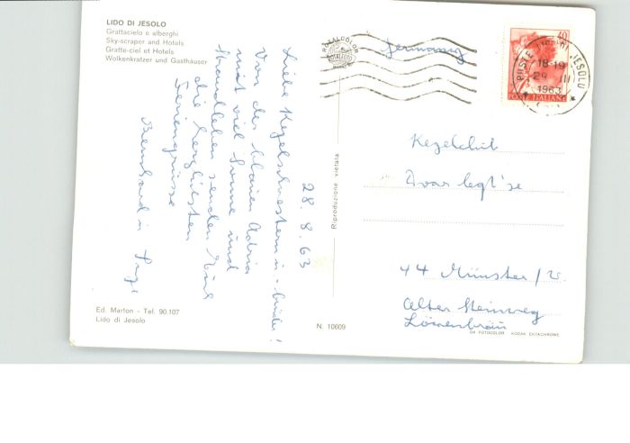 old postcard Lido di Jesolo Grattacielo Alberghi Wolkenkratzer Gasthaus postalisch gelaufen