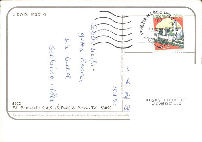 old postcard Lido di Jesolo Hafen Leuchtturm Yachten Windsurfen Strassenpartie postalisch gelaufen Erhaltung siehe scans