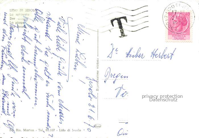 74096140 old postcard Lido di Jesolo IT Strand postalisch gelaufen Erhaltung siehe scans [IrynaD87] KatCode: 11240000000000