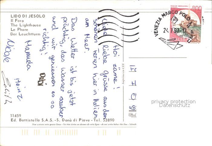 old postcard Lido di Jesolo Leuchtturm postalisch gelaufen Erhaltung siehe scans