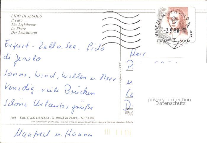 old postcard Lido di Jesolo mit Leuchtturm postalisch gelaufen Erhaltung siehe scans