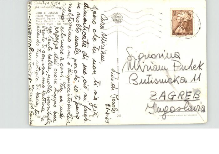 old postcard Lido di Jesolo Piazza Mazzini Platz postalisch gelaufen