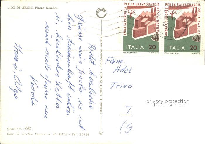 old postcard Lido di Jesolo Piazza Nember postalisch gelaufen Erhaltung siehe scans