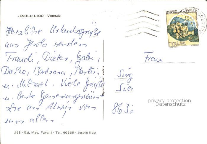 old postcard Lido di Jesolo Sonnenuntergang Strand Hotels postalisch gelaufen Erhaltung siehe scans