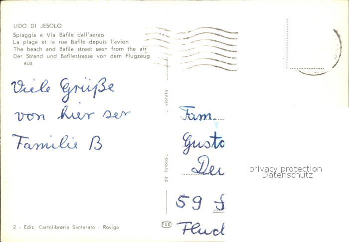 old postcard Lido di Jesolo Spiaggia e Via Bafile dall aereo postalisch gelaufen Erhaltung siehe scans
