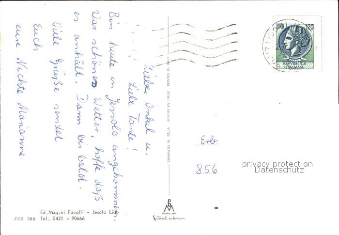 old postcard Lido di Jesolo Strandpartien Promenade Segeln Stimmungsbild postalisch gelaufen Erhaltung siehe scans