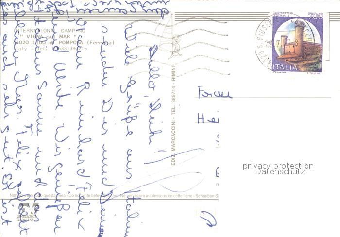 old postcard Lido di Pomposa Camping Vigna sul MAR postalisch gelaufen Erhaltung siehe scans