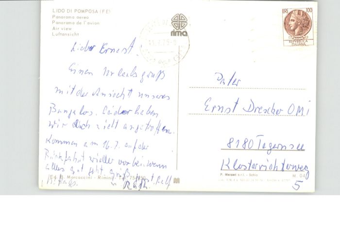 old postcard Lido di Pomposa Fliegeraufnahme postalisch gelaufen
