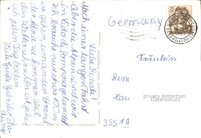 old postcard Lido di Pomposa Segelboot Hotel Strand postalisch gelaufen Erhaltung siehe scans