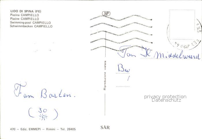 old postcard Lido di Spina Piscina Campiello Swimming Pool postalisch gelaufen Erhaltung siehe scans
