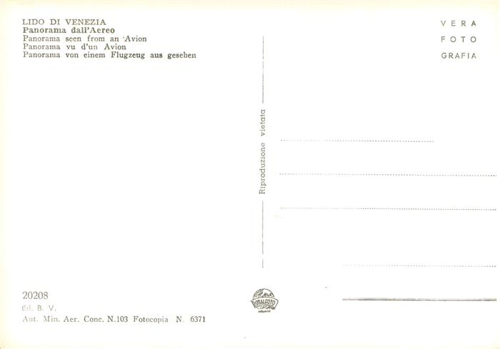 73776223 Lido Venezia IT Panorama dall aereo postalisch nicht gelaufen Erhaltung siehe scans [FriedD77] Frie Katcode 11240