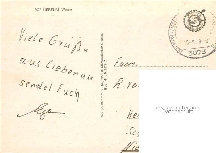 73839485 alte Postkarte Liebenau Nienburg St Laurentiusschule Aue Wehr Schloss Eickhoff postalisch gelaufen Erhaltung siehe scans [FriedD77] KatCode: 11110003256019