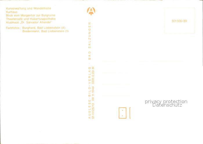 72263634 Liebenstein Arnstadt Kurverwaltung Wandelhalle Kurhaus Burgruine postalisch nicht gelaufen Erhaltung siehe scans KatCode: 11110016070033