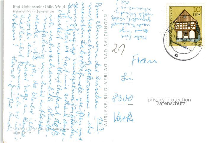 73076074 alte Postkarte Liebenstein Bad Heinrich Mann Sanatorium postalisch gelaufen Erhaltung siehe scans [KathaD81] KatCode: 11110016063002