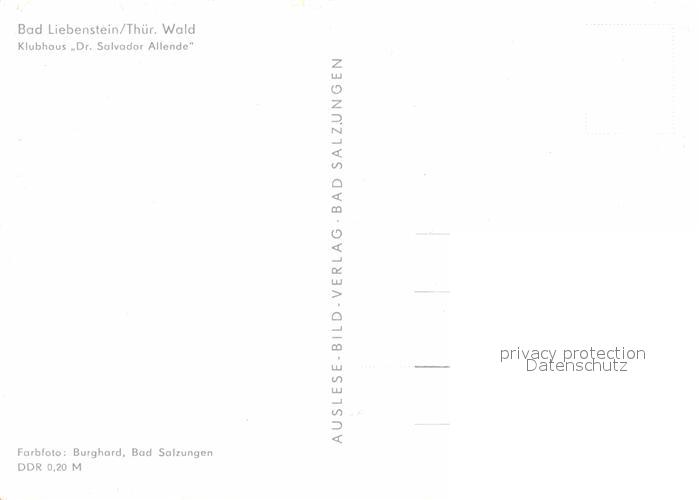 72849601 Liebenstein Bad Klubhaus Doktor Salvador Allende postalisch nicht gelaufen Erhaltung siehe scans [KathaD81] KatCode: 11110016063002