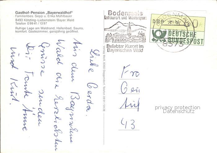 72016350 alte Postkarte Liebenstein Bad Koetzting Gasthaus Pension Bayernwaldhof postalisch gelaufen Erhaltung siehe scans KatCode: 11110009372137