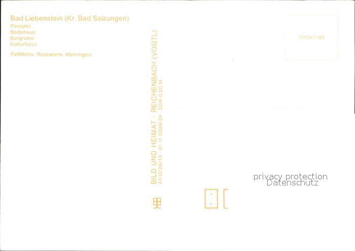 72371752 Liebenstein Bad Postamt Badehaus Burgruine Kulturhaus postalisch nicht gelaufen Erhaltung siehe scans KatCode: 11110016063002