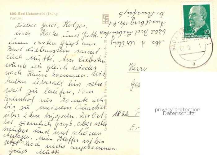 73104012 alte Postkarte Liebenstein Bad Postamt postalisch gelaufen Erhaltung siehe scans [KathaD81] KatCode: 11110016063002