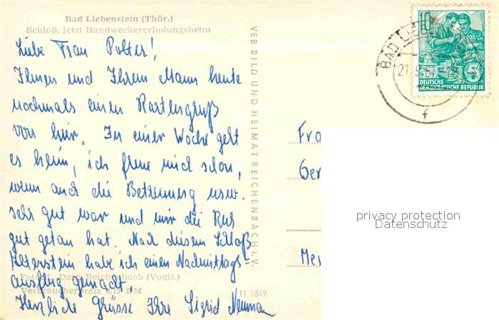 72848217 alte Postkarte Liebenstein Bad Schloss Handwerkererholungsheim postalisch gelaufen Erhaltung siehe scans [KathaD81] KatCode: 11110016063002