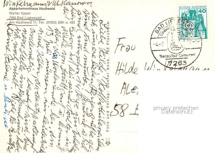 73080613 alte Postkarte Liebenzell Bad Appartmenthaus Hochwald Schwimmbad postalisch gelaufen Erhaltung siehe scans [KathaD81] KatCode: 11110008235008