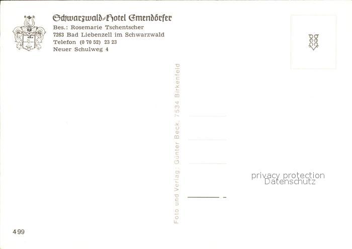 72369233 Liebenzell Bad Hotel Emenduerfer Schwarzwald postalisch nicht gelaufen Erhaltung siehe scans KatCode: 11110008235008